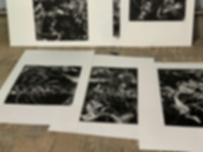 42:36, again is a series of monotypes inspired by a short collection of writings from 2015, some of which recount the passage of those years marked by alcoholism and sleeplessness.
